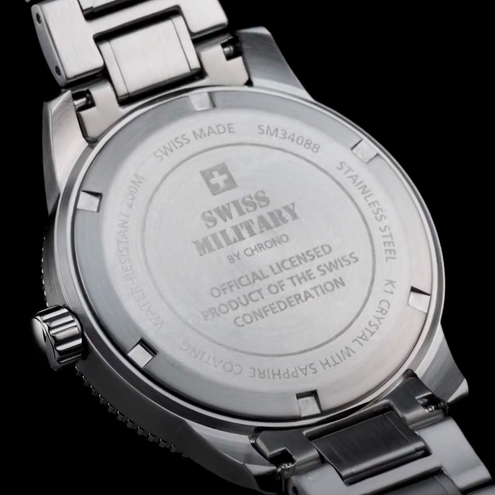 Корпус: Корпус выполнен из нержавеющей стали. Чёрный циферблат. Вращающийся безель. Стрелки и часовые индексы с люминесцентным покрытием. Минеральное стекло с сапфировым покрытием. Водонепроницаемость 200 метров. Диаметр 42 мм.