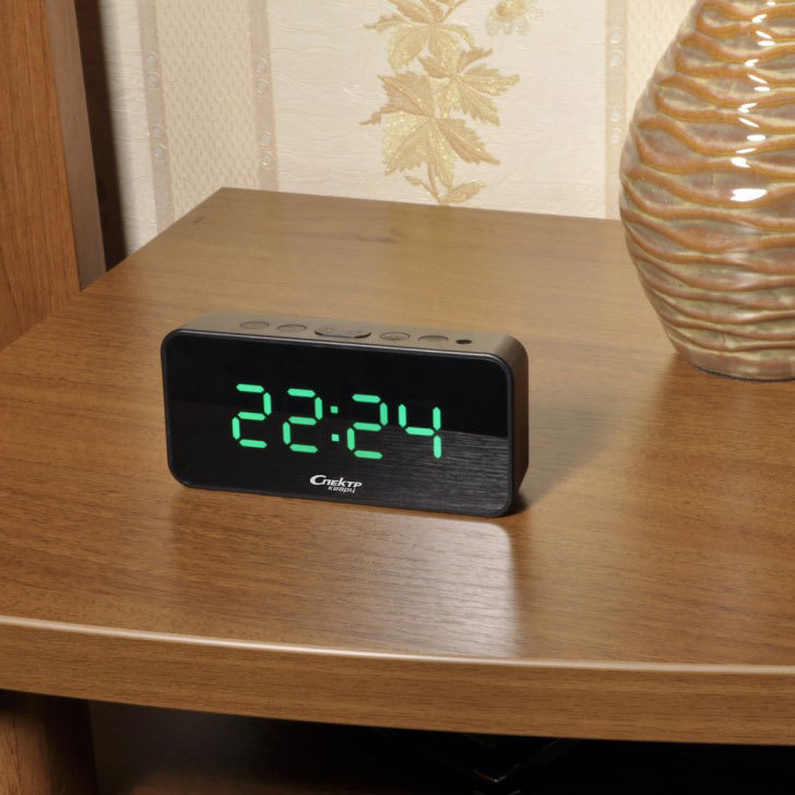 Цвет: Цве корпуса чёрный. Данная модель часов имеет зеркальный тип дисплея. Часы имеют яркую светодиодную индикацию зелёного цвета.