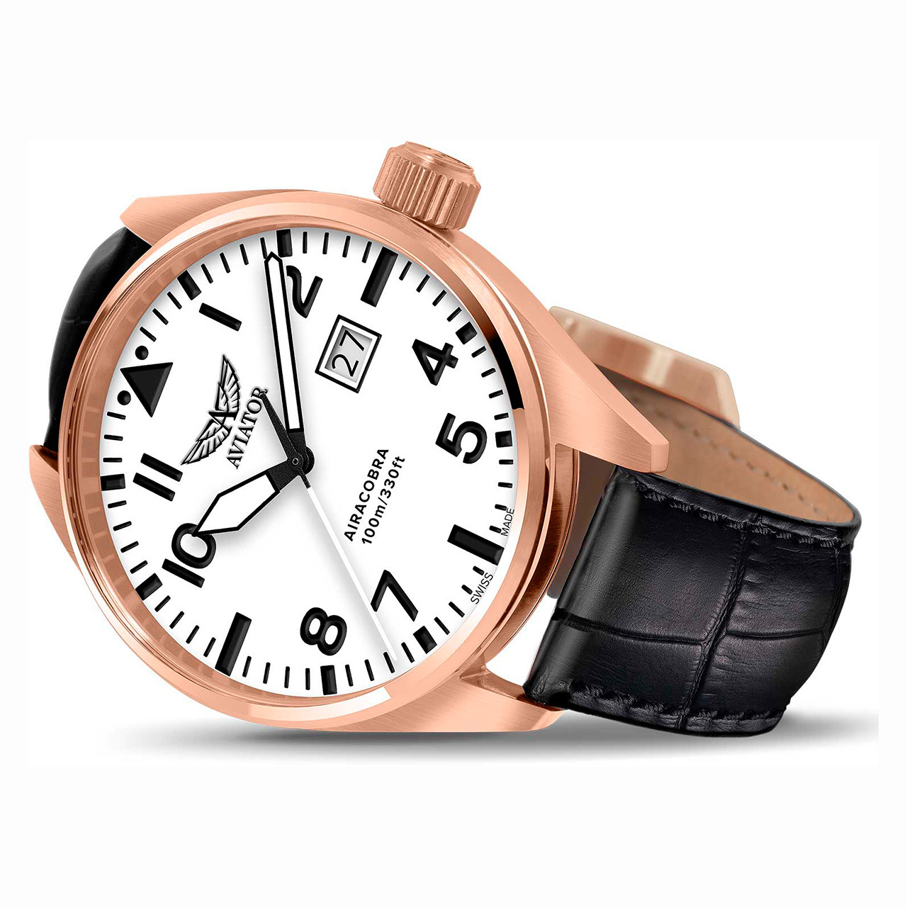 Корпус: Нержавеющая сталь с PVD - покрытием. Циферблат белый, чёрные стрелки и часовые индексы. Сапфировое стекло с антибликовым покрытием. Диаметр 42 мм. Водозащита 100 метров.