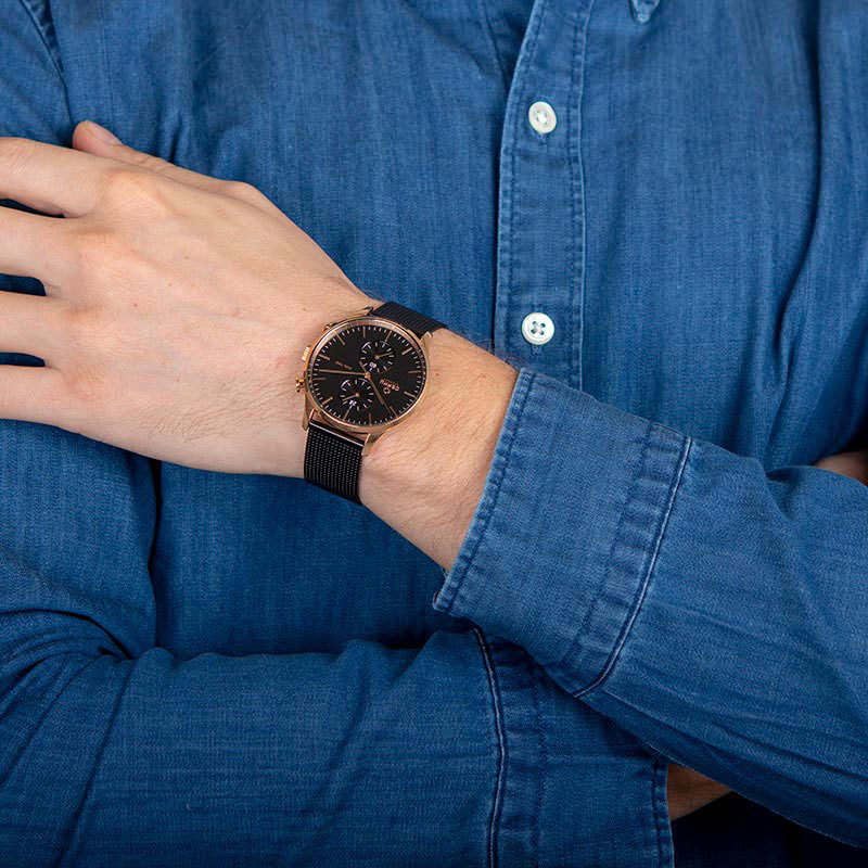Ремешок: Миланский браслет из нержавеющей стали с IP покрытием чёрного цвета.