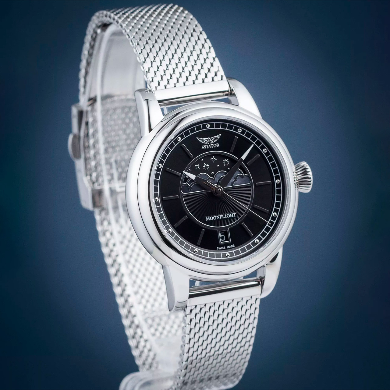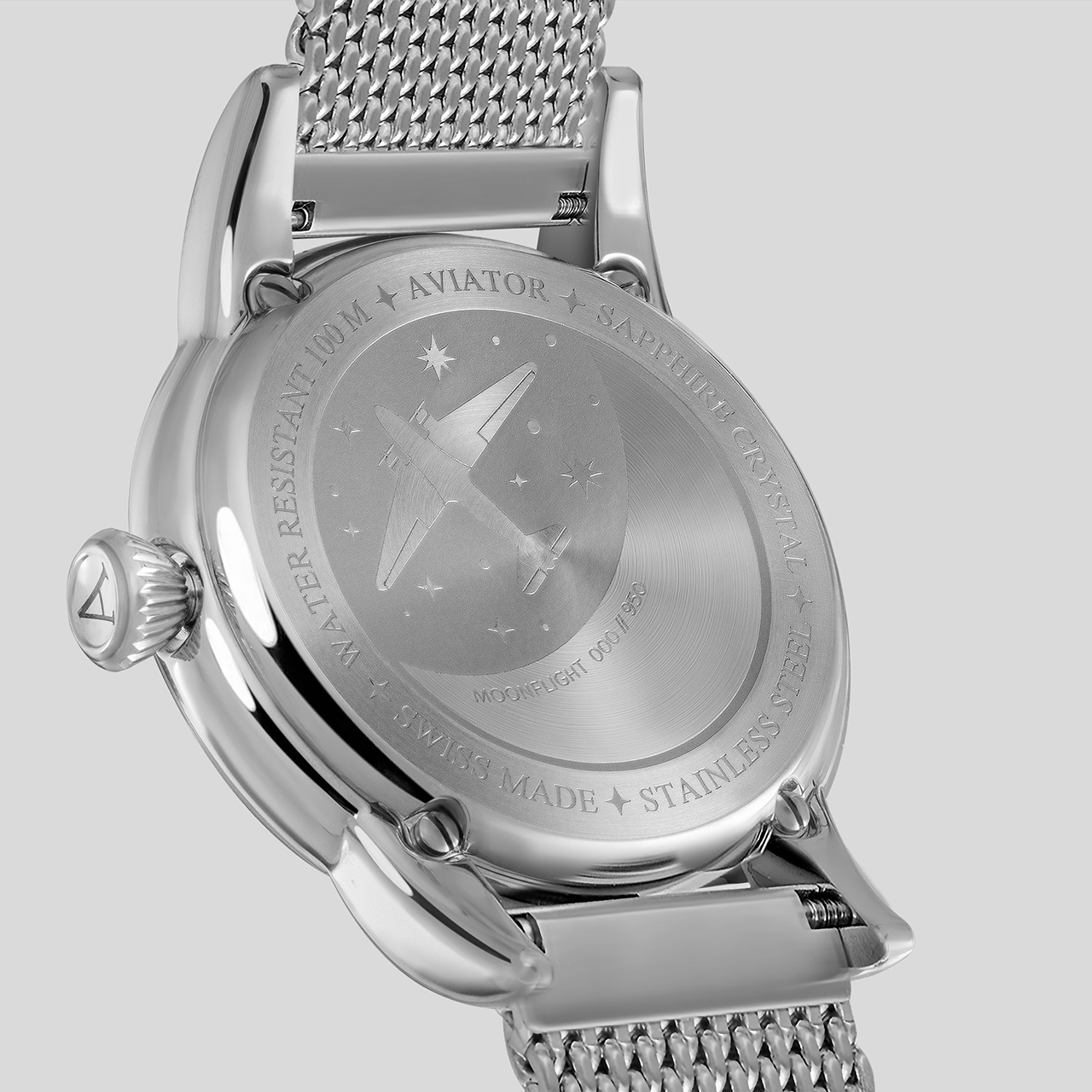 Корпус: Корпус круглой формы выполнен из нержавеющей стали марки 316L. Циферблат чёрного цвета с различными видами финишной обработки. В центральной части стилизация под гильоширование, окруженная шлифовкой в стиле «солнечные лучи». Аппликация часовых индексов и меток-точек. Облака рядом с индикатором фаз Луны с инкрустацией перламутром. Сапфировое стекло с двусторонним антибликовым покрытием имеет повышенную устойчивость к возникновению царапин. Задняя крышка с гравированным изображением авиалайнера Douglas DC-3 имеет винтовое соединение с корпусом. Диаметр: 36 мм. Водостойкость 100 метров (10 АТМ).