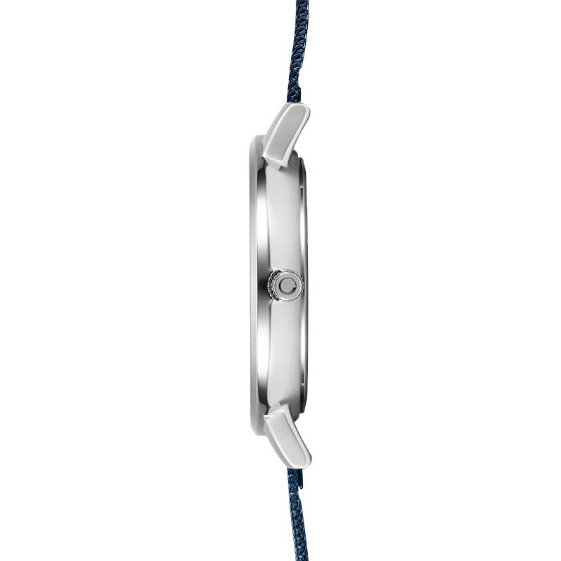 Корпус: Нержавеющая сталь 316L. Синий циферблат с серебристыми стрелками. Минеральное стекло повышенной прочности. Водозащита: 30 м. Диаметр: 34 мм.
