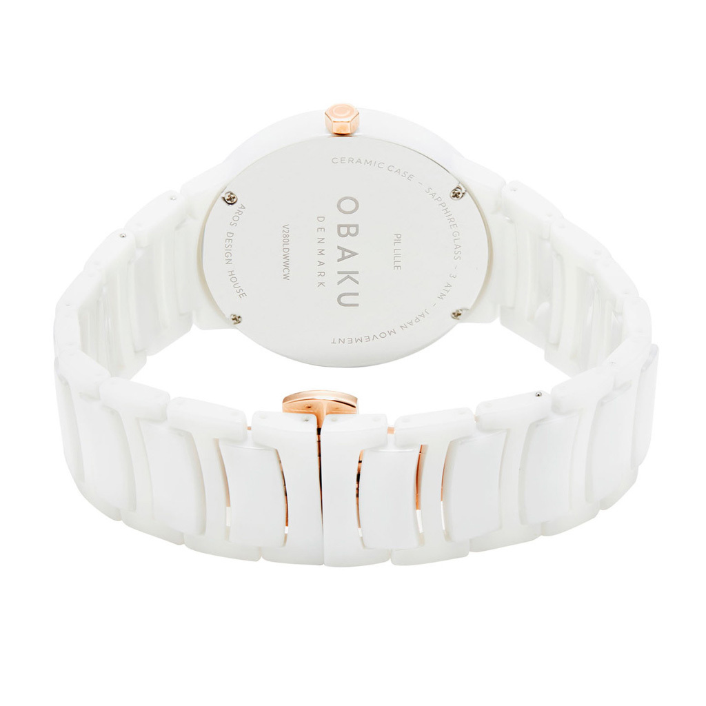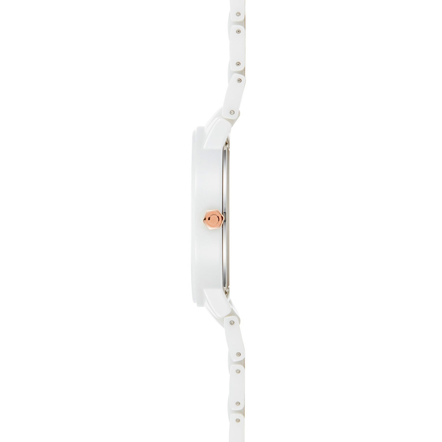 Корпус: Корпус выполнен из белой керамики. Белый циферблат с часовыми индексами в виде штрихов. Устойчивое к возникновению мелких механических повреждений сапфировое стекло. Диаметр корпуса 38 мм. Водостойкость WR 30.