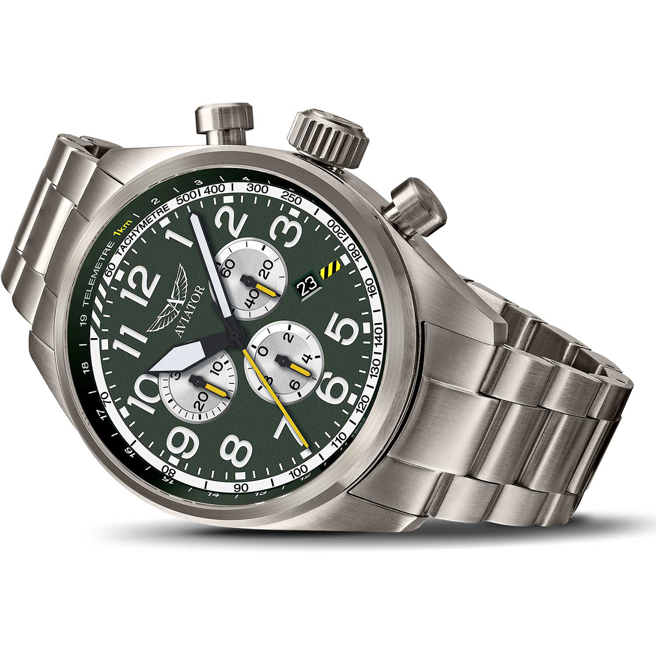 Корпус: Корпус выполнен из высококачественной стали с титановым покрытием PVD. Циферблат зеленого цвета. Цифры в стиле “пилот” выполнены методом печати. Стрелки и метки с покрытием SuperLuminova. Сапфировое стекло с антибликовым покрытием. Завинчивающаяся заводная головка. Диаметр 45 мм. Водозащита 100 метров.