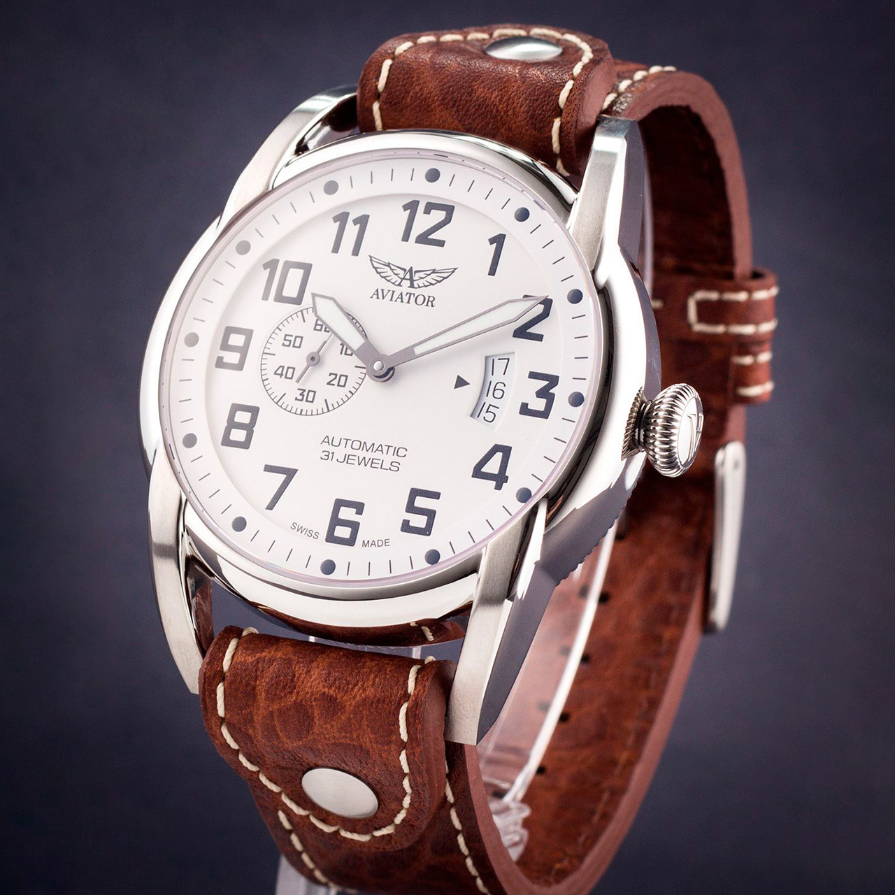 Ремешок: Коричневый ремешок из натуральной кожи, стальная пряжка.