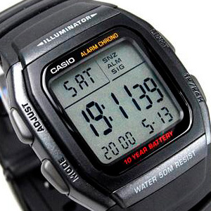 Функции: Кварцевые часы с электронным (цифровым) способом отображения времени. Секундомер с точностью показаний 1/100 с и максимальным временем измерения 24 часа. 12-24-х часовой формат времени. Возможность указания времени в двух часовых поясах. Автоматический календарь. Ежедневный будильник с функцией повтора.