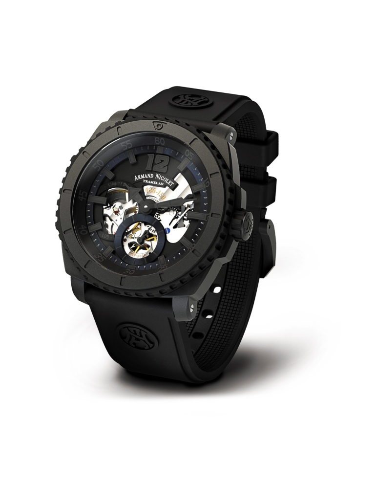 – В этом году Armand Nicolet выпустил первую коллекцию спортивных часов L09, серия всего 450 экземпляров. Модель выполнена в титановом корпусе с черным DLC-покрытием, в качестве «двигателя» часов мы использовали переработанный механизм 1957 года UT 600, превращенный в калибр AN0711A с ручным заводом и 36-часовым запасом хода. Еще одна спортивная новинка – дайверские часы – S05 GMT Diver.