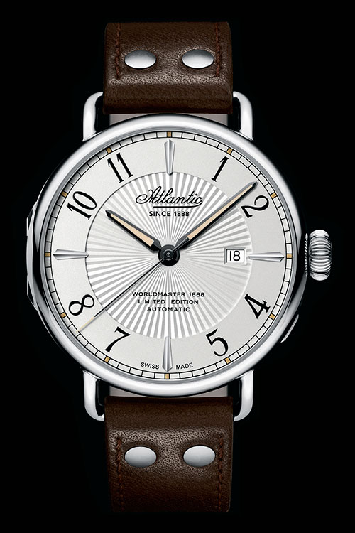 В таком же количестве выпущены часы Worldmaster 1888 Limited Edition Automatic, оснащенные механизмом с автоподзаводом. Об истории часового дела в этой модели рассказывают винтажные детали. Свой крупный корпус диаметром 44 мм часы унаследовали у карманных «собратьев». В ретростиле выдержаны форма ушек и циферблат, украшенный расходящимися от центра солнечными лучами. Заводная головка часов в форме луковицы декорирована фирменным знаком Atlantic в виде комбинации маятника часов и морского секстанта. Завершает образ кожаный ремень с четырьмя заклепками. На откидную заднюю крышку нанесен номер экземпляра и памятная гравировка в честь юбилея.