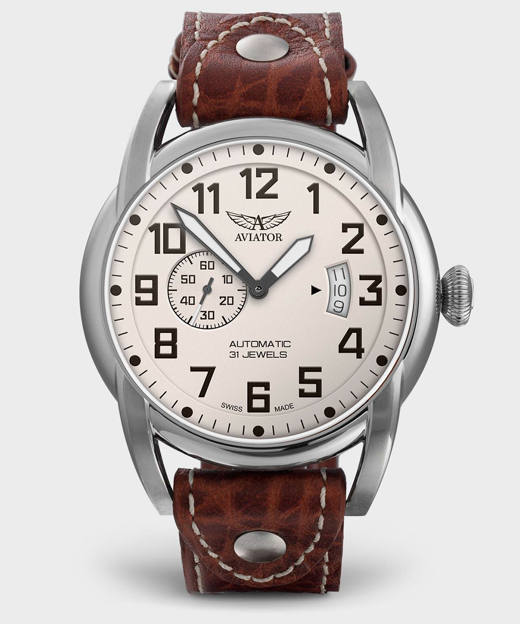 Один взгляд и понятно, что эти часы заставят вас вернуться в ранние времена авиации. Используя ранний дизайн часов кабины, яркие цифры и круглые индексы, AVIATOR Bristol Scout имеет не только уникальный, но и очень четкий вид. Маленький, второй счетчик, расположенный на отметке «9 часов», помогает пилотам гарантировать, что часы работают точно, в то время как секунды работают непрерывно. Его винтажный стиль элегантно завершается окном даты в стиле высотомера в 3 часа.