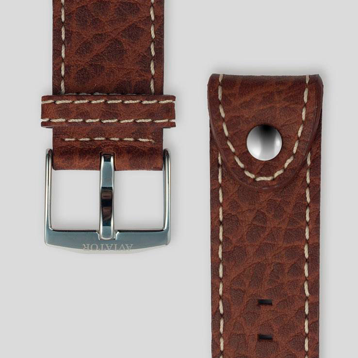 Отличительный своим присутствием большой карманный корпус AVIATOR Bristol Scout Limited Edition с поразительным достоинством перекликается с его винтажным прошлым. Его большой корпус и отверстие для циферблата напоминают стиль первых карманных часов с ушками, которые позже были приварены к ремешку. Заимствуя этот оригинальный дизайнерский нюанс, нетипичные ушки, приваренные к корпусу, не требуют пружинных стержней и легко крепятся к ремешку из натуральной кожи. Уникальный внешний вид этой модели также дополняет крупногабаритная корона с глубоким рисунком, который обеспечивает идеальное сцепление даже в самых толстых перчатках пилота.