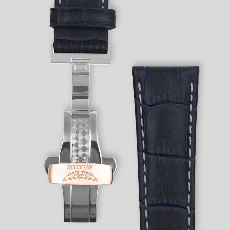 Корпус состоит из трех симметричных частей: безеля, корпуса, задней крышки. Его округлые изгибы, отделанные вручную в тонких часовых техниках, вдохновлены изящной утонченностью фюзеляжа самолета Douglas. Его потрясающие, зеркально отполированные поверхности обтекаемы эргономичными гладкими линиями. А его изогнутые выступы олицетворяют собой элегантность прошлых лет, обеспечивая при этом правильную посадку на любом запястье. Как и все случаи с часами AVIATOR, он требует более 40 операций, чтобы не отставать от строгих маршрутов.