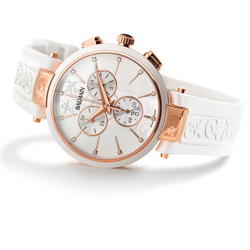Коллекция часов «Balmain Iconic Chrono Lady» отличается вариативностью циферблатов: посеребренный циферблат; белый – с узором арабески и 12 алмазами, выполняющими функции часовых меток; белый полированный циферблат, покрытый лаком, а также серебристый и чёрный.