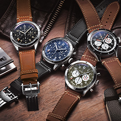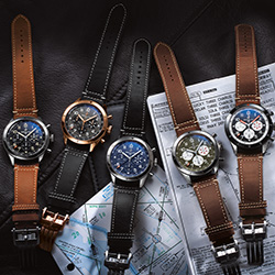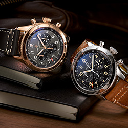 В новую серию входят пять моделей часов, посвященных четырем знаменитым военным самолетам. Их изящные силуэты украшают заднюю крышку каждого хронографа, выполненную из сапфирового стекла.