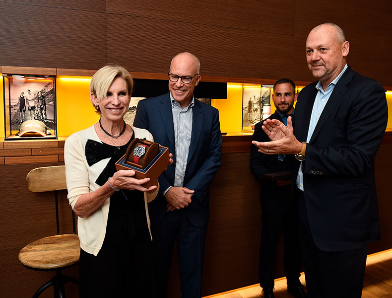 В фирменном бутике Breitling в Нью-Йорке в честь партнерства двух именитых брендов состоялся торжественный прием, на котором впервые представлена новая модель часов. В роли хозяев вечера выступили Тьерри Приссер, президент компании Breitling USA, и Эндрю Мессик, президент и генеральный директор IRONMAN Group. На мероприятии присутствовали свыше 150 гостей. Среди приглашенных Пола Ньюби-Фрейзер, восьмикратная чемпионка мира по IRONMAN® и обладательница титула «Королева Коны», а также официальный комментатор соревнований IRONMAN® Майк Релли. Гостями вечера были и другие спортсмены, составляющие элиту мирового троеборья.