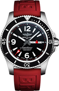 Лимитированная серия часов Breitling Superocean Automatic 44 Ironman Limited Edition, выпущенная в честь сотрудничества часовой мануфактуры с IRONMAN, входит в коллекцию популярных часов для дайвинга Breitling Superocean. Диаметр корпуса, выполненного из нержавеющей стали, составляет 44 мм. Черный циферблат украшен фирменным логотипом IRONMAN®. Модель дополняет красный каучуковый ремешок Diver Pro III с классической застежкой. Вращающийся в одном направлении безель с храповым механизмом станет незаменимым инструментом для дайверов, измеряющих время нахождения под водой.
