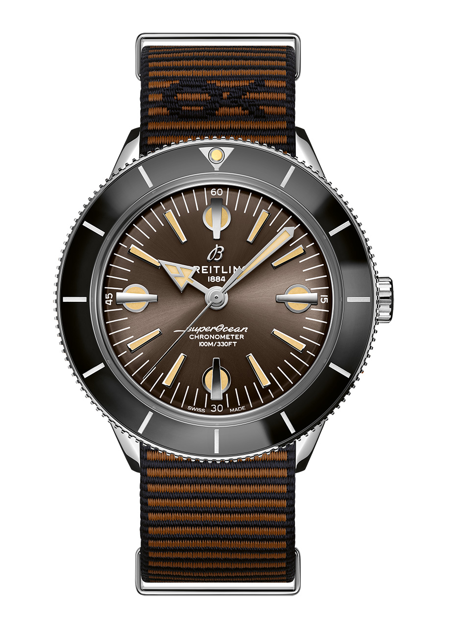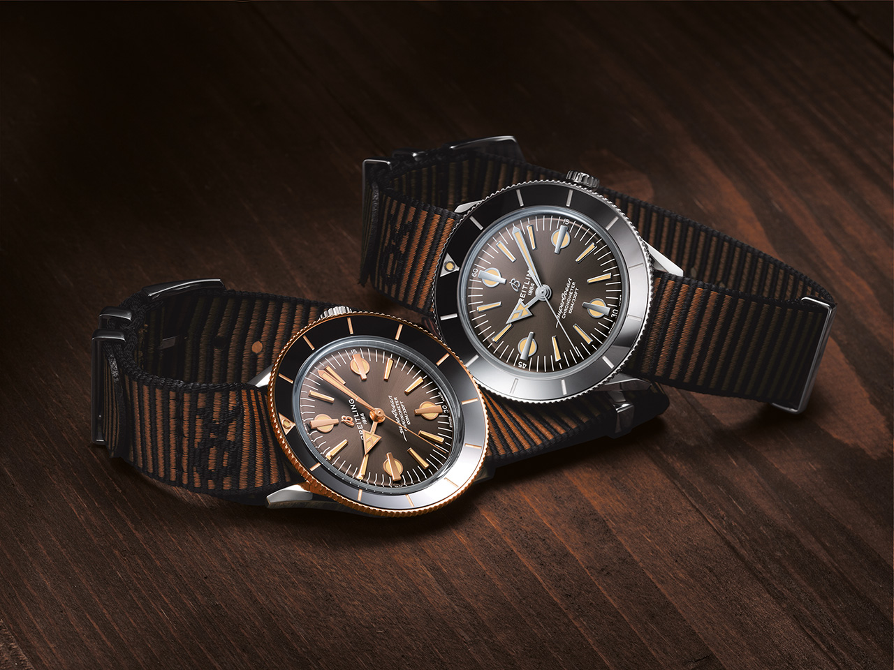 Breitling объявляет о выпуске Superocean Heritage ’57 Outerknown – третьей модели часов, созданной в сотрудничестве с компанией Outerknown, производителем одежды из экологичных материалов. Одним из ее основателей является серфингист Келли Слейтер. Эти современные часы в стиле ретро для покорителей морской стихии отличаются бронзовым циферблатом и ремешком NATO из материала ECONYL® от Outerknown. Они напоминают о непринужденном, полном свободы и независимости образе жизни серфингистов в Южной Калифорнии и на Гавайях в 1950–60-х годах. Модель выпускается в классическом корпусе из нержавеющей стали или в лимитированной версии с безелем из 18-каратного розового золота – для тех, кто желает произвести яркое впечатление.