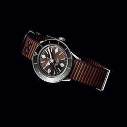 Часы Superocean Heritage ’57 Outerknown Limited Edition также обладают бронзовым циферблатом и коричневым ремешком NATO Outerknown из материала ECONYL®. Их вогнутый безель из 18-каратного розового золота, вращающийся в оба направления, эффектно смотрится на фоне черного керамического кольца. Эта модель выпущена ограниченным тиражом 500 экземпляров.