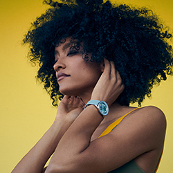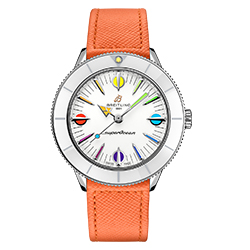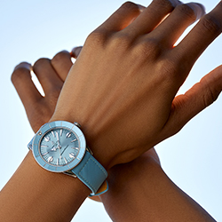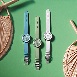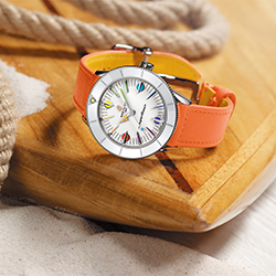 Цветовая палитра сезонной капсульной коллекции для женщин – это летняя свежесть белого, цвет морской волны, мятно-зеленый и цвет латте. Циферблаты, безели и ремешки всех моделей выполнены в тон. А настоящим «гвоздем программы», без сомнения, можно назвать модель мандаринового цвета. На индексы и стрелки этих часов нанесено люминесцентное покрытие Super-LumiNova®, которое образует «радугу» из желтого, зеленого, голубого, синего, фиолетового, красного и оранжевого цветов. Если желаете создать собственную цветовую комбинацию, вам понравится система быстрой замены ремешков из роскошной телячьей кожи Saffiano, которые выпускаются также лимонного оттенка и цвета малинового сорбета.