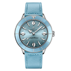 Вся суть капсульной коллекции Superocean Heritage ’57 Pastel Paradise в цветах, пропорциях, и, конечно же, в содержании. Корпус из нержавеющей стали диаметром 38 мм отличается вращающимся безелем и крупными индексами. Эта коллекция – воплощение летнего стиля.
