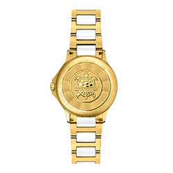 - Браслет из нержавеющей стали с PVD-покрытием цвета желтого золота и белыми керамическими звеньями.