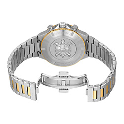 Функции: Часы, минуты, малая секундная стрелка, дата; хронограф с указателем 1/10-секунды, 30-минутный и 60-секундный счетчики