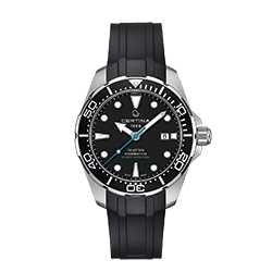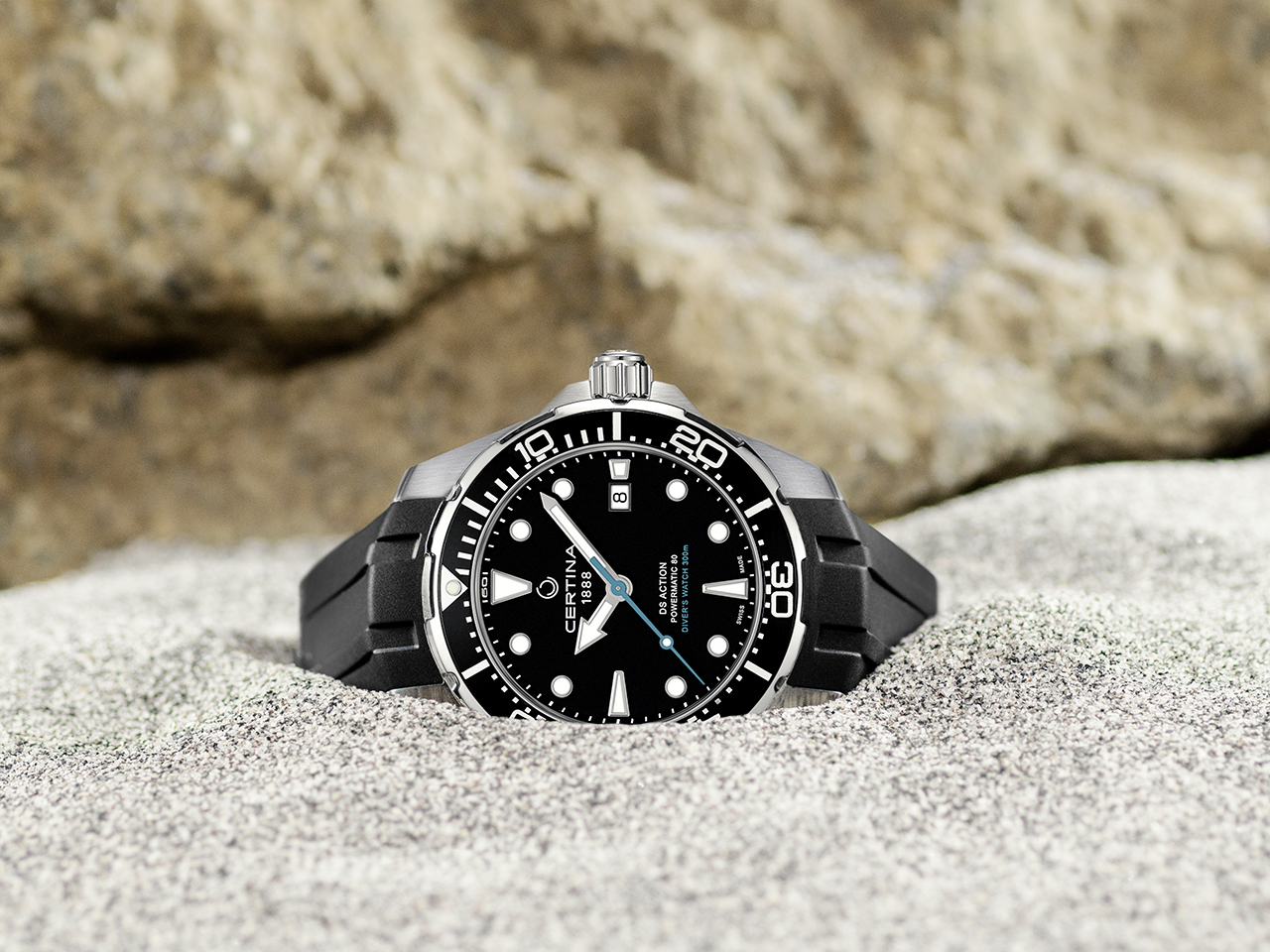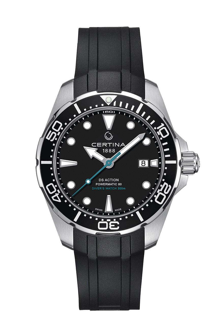 Модель DS Action Diver Sea Turtle Conservancy 60th Anniversary объединяет две значимые для бренда Certina темы: надежность часовых изделий марки и символ черепахи. Однонаправленно вращающийся безель, обильное покрытие Super-LumiNova®, завинчивающаяся заводная головка, завинчивающаяся задняя крышка и водонепроницаемость до 300 м позволяют этой модели соответствовать требованиям стандарта ISO 6425 для дайверских часов. Новинка в корпусе из нержавеющей стали диаметром 43 мм оснащена часовым механизмом Powermatic 80 с автоматическим подзаводом и запасом хода до 80 часов. Указатель даты расположен на отметке «3 часа» на циферблате черного цвета. Черный каучуковый ремешок с раскладывающейся застежкой, две кнопки и удлинитель для дайвинга обеспечивают идеальное прилегание на суше и под водой.