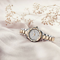 Две двухцветные версии создают идеальное обрамление для слегка переливающихся циферблатов, безель которых имеет PVD-покрытие цвета розового золота: один циферблат выполнен в антрацитовых тонах, другой имеет инкрустацию сияющими серебристыми стразами. Обе модели оснащены стрелками цвета розового золота и металлическими браслетами с PVD-покрытием цвета розового золота. Простая элегантная модель из нержавеющей стали имеет эффектный темно-синий циферблат. Щедрый слой покрытия Super-LumiNova® на стрелках, цифрах и часовых отметках всех моделей обеспечивает оптимальную считываемость показаний даже в темноте.