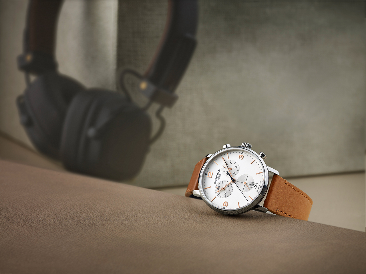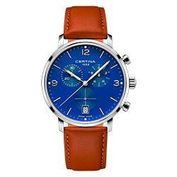 Стильные и функциональные, часы DS Caimano Chronograph впечатляют как внешним обликом, так и внутренним исполнением. Геометрические формы создают четкий, минималистичный дизайн этой модели. Круглый корпус диаметром 42 мм из нержавеющей стали или титана обрамляет синий, черный или белый циферблат с гильоше «Солнечные лучи». Сапфировое стекло с антибликовым покрытием, удлиненные стрелки и тонкие прямоугольные часовые отметки с арабскими цифрами благодаря покрытию Super-LumiNova обеспечивают безупречную считываемость показаний даже в темноте. Часы оснащены металлическим браслетом, гармонирующим с корпусом, или ремешком из телячьей кожи коричневого цвета. Специальная система позволяет быстро и легко менять ремешки.