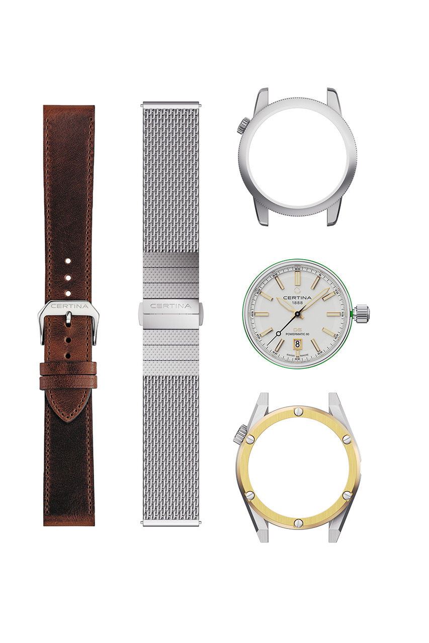 С множеством вариантов кастомизации новой модели DS+ можно ознакомиться как онлайн, так и в бутиках. Онлайн-конфигуратор позволяет в любое время легко подобрать индивидуальный образ и заказать понравившийся комплект в интернет-магазине Certina. При желании понравившийся комплект можно сначала примерить, воспользовавшись услугой резерва у выбранного дилера Certina. Три комплекта DS+, а также дополнительные элементы, предлагающиеся онлайн, доступны к покупке по всему миру с октября 2022 года.