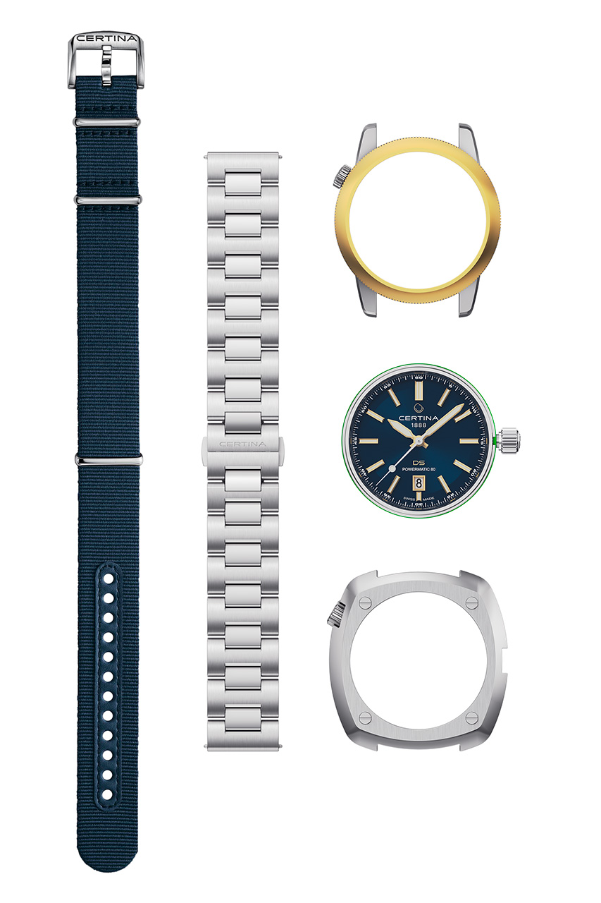 Модель DS+ представляет новую концепцию от Certina: часы с возможностью выбора не только ремешка, но и формы корпуса для создания кастомизированного аксессуара. Выберите спортивный или винтажный образ, стиль для города или отпуска. Благодаря уникальной трехмодульной конструкции вы можете легко изменить дизайн часов – без использования инструментов и всего за несколько шагов – чтобы соответствовать выбранному образу. При этом надежность, прочность конструкции и точность автоматического калибра Powermatic 80 с пружиной баланса Nivachron™ остаются неизменными. Certina продолжает переносить динамично меняющийся стиль на ваше запястье, создавая модели, которые во всех отношениях представляют собой больше, чем просто часы.