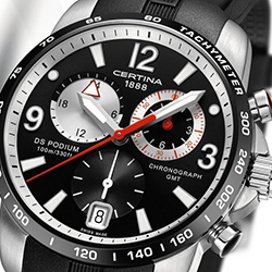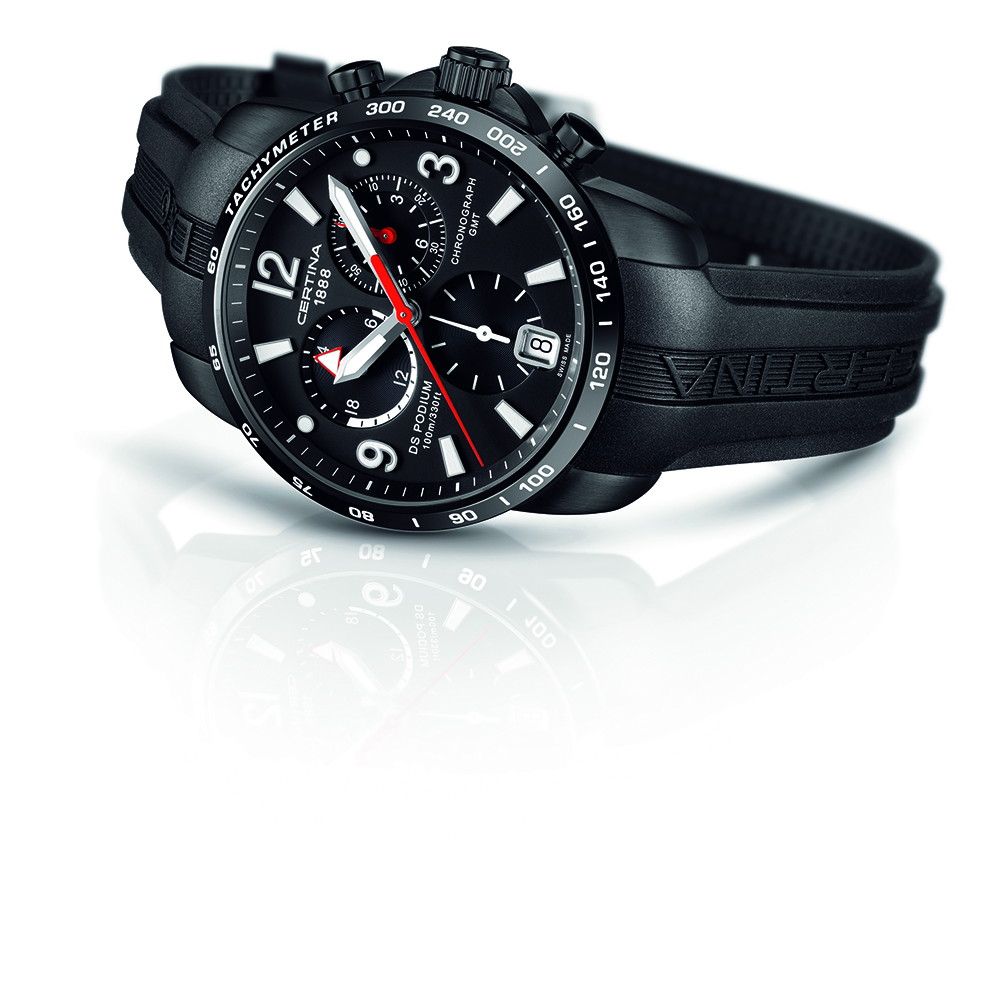 «Certina» – лидирующая марка на рынке спортивных часов и спортивных хронографов и только её часы всегда готовы к самым невероятным испытаниям. Они неизменно демонстрируют исключительную техническую точность и надёжность, способны стать незаменимым и верным помощником всем, кто путешествует по миру, тем более что новые многофункциональные часы «DS Podium GMT Chronograph», пополнившие популярную коллекцию «DS Podium», специально созданы для этого. Новинка имеет хорошо узнаваемый классический дизайн в спортивном стиле и безупречно соответствует интенсивному деловому темпу жизни и хорошему вкусу своего обладателя.