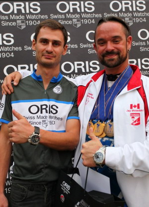 Справа-Генеральный директор представительства ORIS Павел Ларин. Слева-канадский спортсмен Джейсон Малецки.