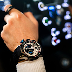 Лучшие гонщики в автоспорте, а также в обычной жизни ожидают от своего оборудования только самого лучшего. Новый лимитированный Chronorally — это идеальный инструмент для хронометража в спорте, где для достижения успеха решающее значение имеют доли секунды. Как и автомобили BMW M Motorsport, модель Chronorally — удивительная машина. Это большой дерзкий 48-миллиметровый титановый корпус и набор функций хронографа, управляемых механизмом Calibre 38s. Уникальные большие кнопки в положении «два часа» и «четыре часа» позволяют владельцу даже в перчатках измерять время круга с высокой точностью.