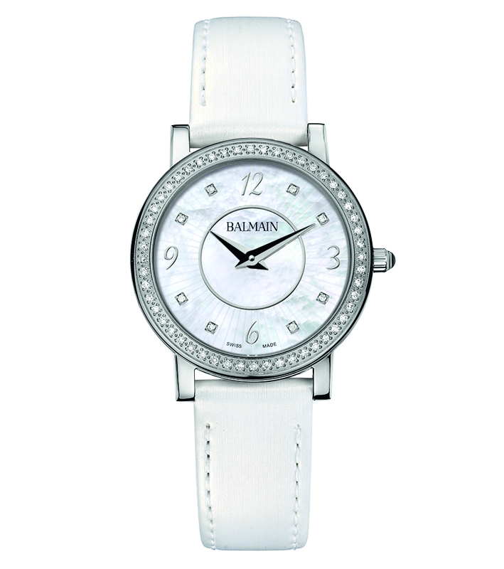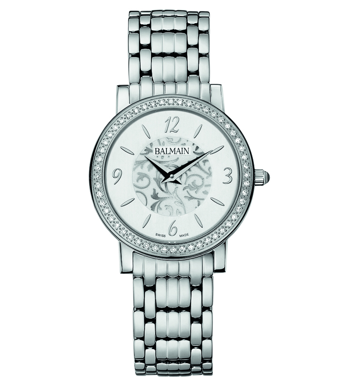 Циферблаты часов, защищённые устойчивым к царапинам сапфировым стеклом, имеют несколько вариантов: с серебристой отделкой, с серебристой отделкой и украшением в виде традиционных арабесок «Balmain», с отделкой белым или чёрным перламутром и восемью алмазами, играющими роль условных часовых индексов. На циферблате установлены центральные стрелки часов и минут, арабские цифры 3,6,9,12.
