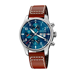 Линейка Swiss Made бренда Festina пополнилась механическими часами с автоподзаводом – хронографом F20150. Эти часы выполнены в традиционном дизайне пилотских часов с красной стрелкой.