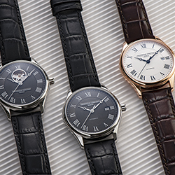 Две другие модели имеют корпус из стали. Одна из них представлена с серебристым циферблатом, другая – с циферблатом цвета хаки, и обе дополнены черным ремешком из кожи. Каждая модель оснащена автоматическим калибром FC-303 с запасом хода 38 часов.