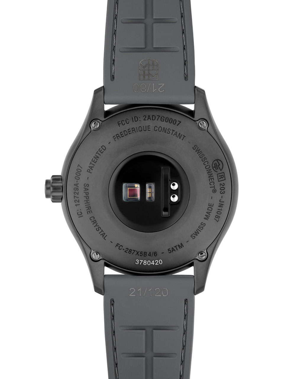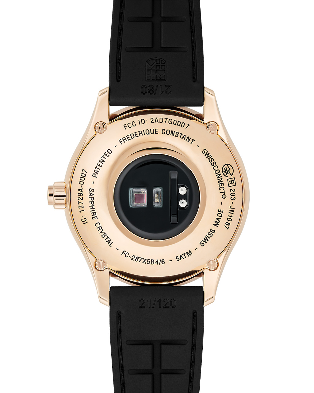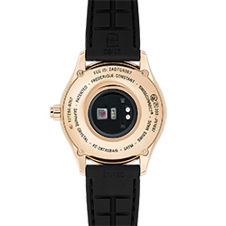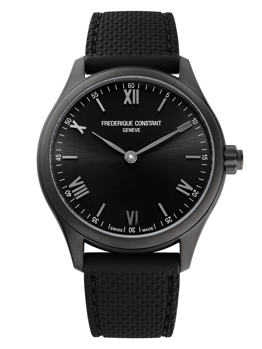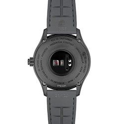 Чтобы удовлетворить потребности коллекционеров и ценителей часов из золота и стали, Frederique Constant предлагает две новые модели Smartwatch Gents Vitality. Первая имеет изысканный корпус с покрытием из розового золота. Он дополнен черным циферблатом, гармонично объединившим традиции и современность. Люминесцентные стрелки и граненые накладные индексы также имеют покрытие из розового золота. Текстурированный каучуковый ремешок, оснащающий все новые модели, подчеркивает особую эстетику этих часов в стиле «спорт-шик». Все, кроме одной.