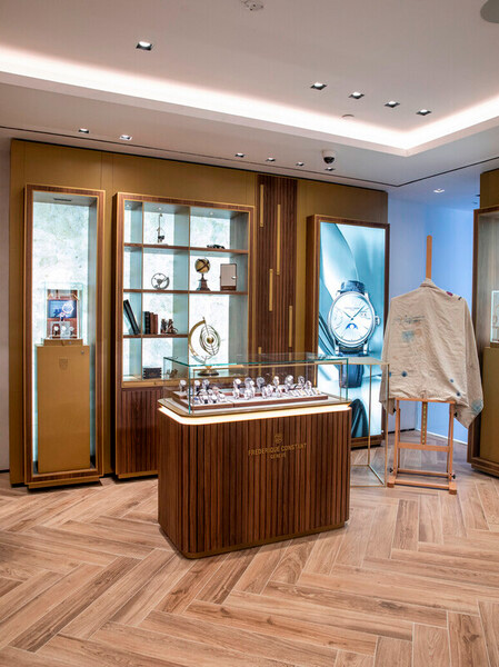 Синий циферблат украшен узором в виде глобуса, символизирующим уникальный стиль коллекции Highlife. Вечный календарь показывает день, дату, месяц и високосный год, а турбийон на отметке 6 часов подчеркивает сложность и точность механизма.