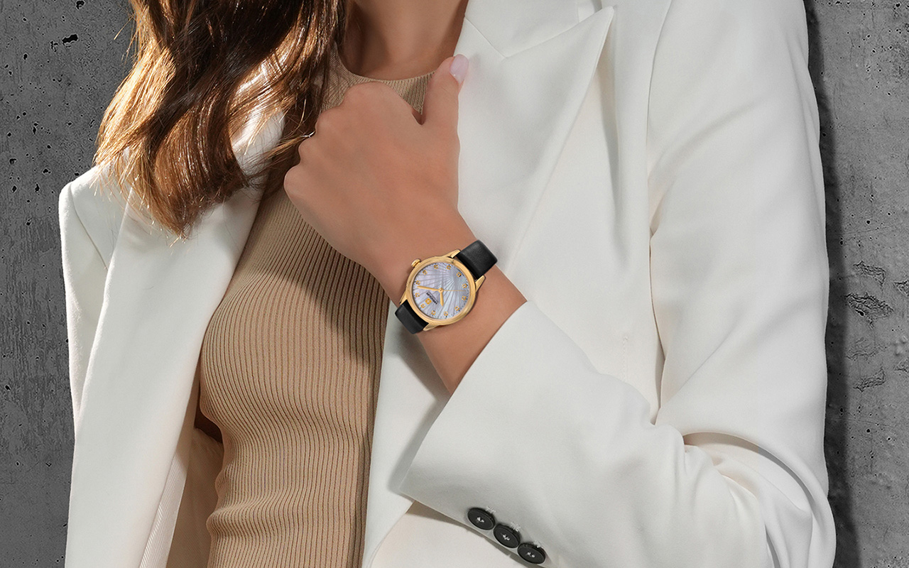 Представляем новую коллекцию Canova, вдохновленную сочетанием современной элегантности и классики, созданную для стильных женщин, ценящих вневременную грацию. Лучевой узор на циферблате придает моделям изысканность, оставаясь универсальным, идеально дополняя различные стили. Нежные переливы перламутра и блеск хрустальных индексов, добавляют вашему запястью нотку гламура.
