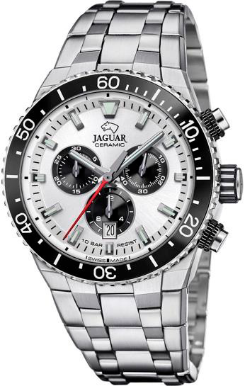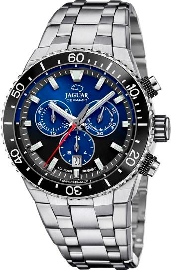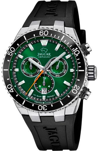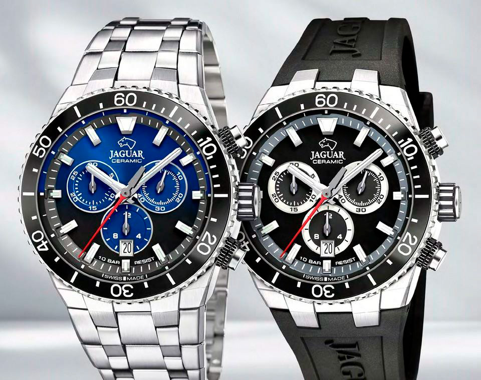 - Jaguar J1022 — пять моделей на браслете из сатинированной стали с керамическим безелем в цвет циферблата, включая вариации "Панда" и насыщенный зелёный.