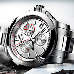 - центральной стрелкой секундного счётчика хронографа с родиевым покрытием;