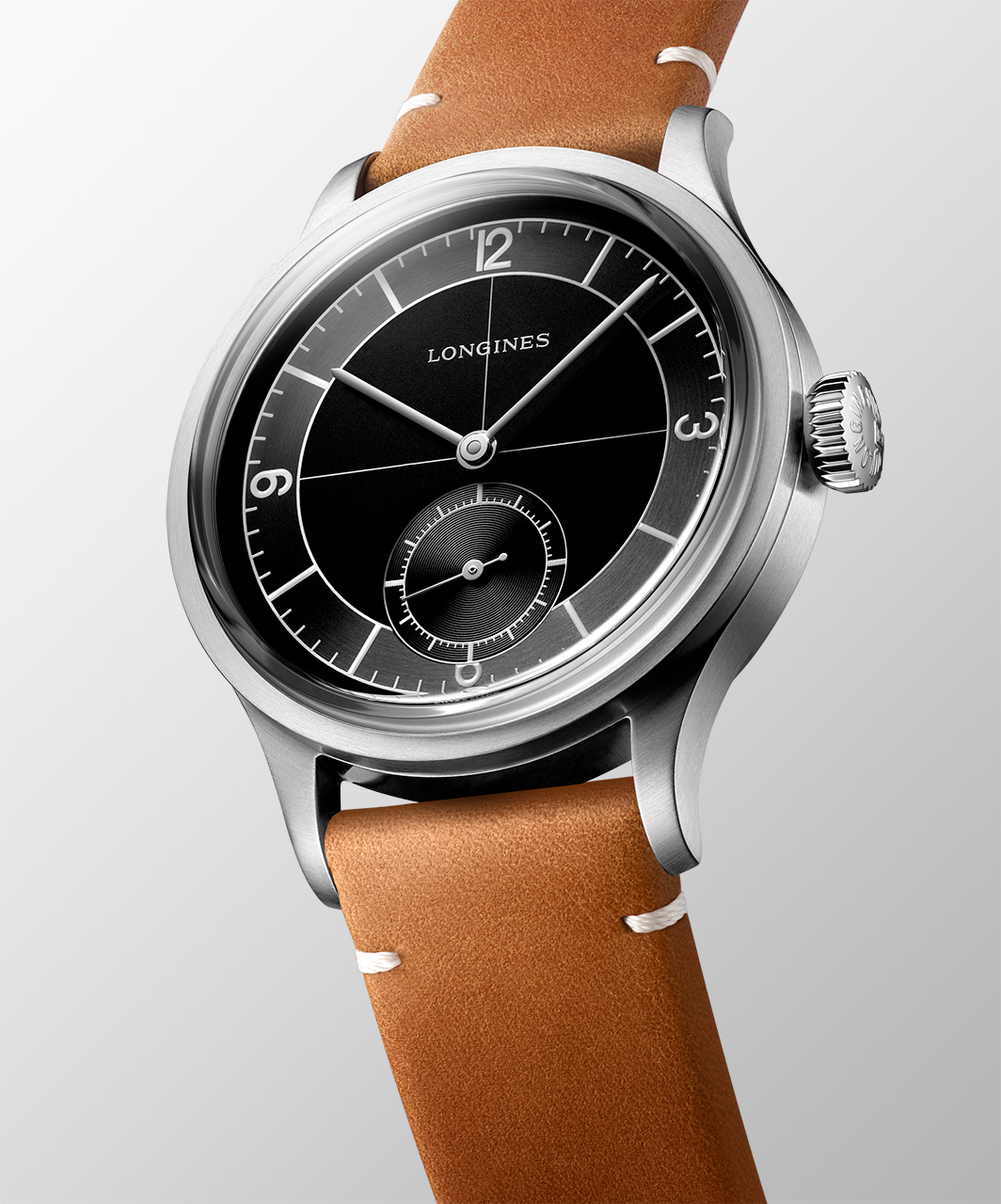 Вдохновленный дизайном 1930-х годов циферблат Longines Heritage Classic разделен на секторы с индивидуальной отделкой. Центральный матовый круг антрацитового цвета оттеняет тонкие серебристые стрелки. Яркий смысловой акцент – малый секундный счетчик с остроконечной стрелкой.
