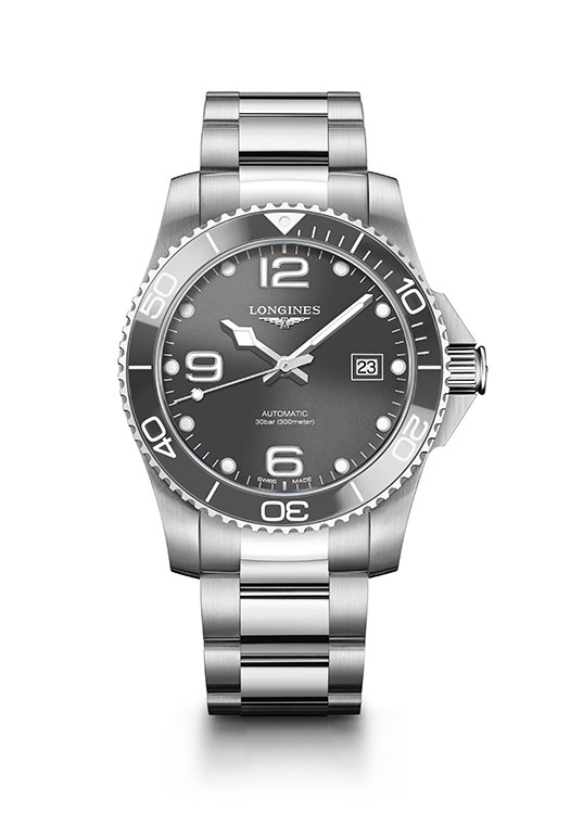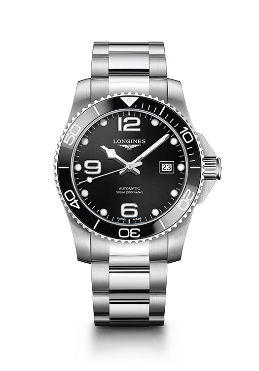 Новинки HydroConquest сохраняют традиционный стиль часов для дайвинга и отвечают требованиям этого вида спорта. Отличительные признаки моделей из обновленной коллекции – водонепроницаемость при погружении на глубину до 300 метров, безель, который вращается в одном направлении, завинчивающиеся заводная головка и задняя крышка, защита для заводной головки и двойная застежка-бабочка с удлиненным ремешком — специально для дайверов.