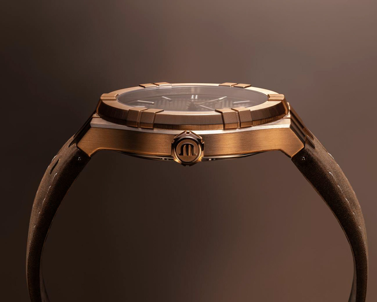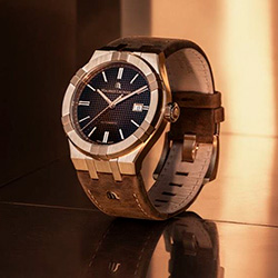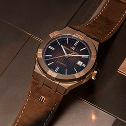 Там, где предыдущая 42-мм бронзовая модель имела глубокий синий циферблат с арабскими цифрами в 12, 6 и 9 часов, AIKON Automatic Bronze входит в новое пространство изысканности с градиентным цветом дымчатого шоколада. Текстура Clous de Paris добавляет объем и сложность, а логотип Maurice Lacroix из золота на 12 часах служит маяком блеска. Это игра света и тени, где граненые стрелки часов, минут и секунд в золоте скользят по индексам, которые тоже в золоте. Применение белых вставок Super-LumiNova® на индексах, а также часовых и минутных стрелках обеспечивает оптимальную читаемость даже в темном освещении.