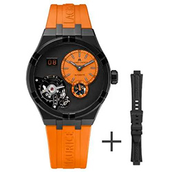 Как и в случае с другими элементами коллекции AIKON, в чехле отсутствуют обычные выступы и ремешок встроен в корпус, что повышает комфорт пользователя. Часы поставляются с двумя резиновыми ремешками: один подходит к циферблату, а другой представлен в черном цвете в дополнение к корпусу. На обоих ремешках рельефно выгравировано Maurice Lacroix, что придает модели современный вид.