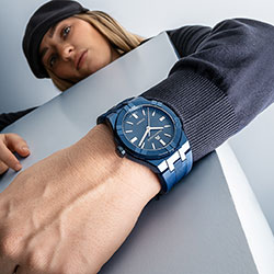 Новые модели AIKON подчеркивают индивидуальность своего владельца. Обе модели имеют PVD-покрытие, создающее металлическое сияние. Версия в корпусе 39 мм представлена в глубоком синем цвете ночного неба, а версия в корпусе 42 мм – в темно-антрацитовом цвете. Циферблат темно-антрацитовой модели украшен узором Clous de Paris и градиентом от светлого центра к темной периферии. Часы AIKON отображают основные показатели времени – часы, минуты и секунды, что делает их идеальными для ценителей минимализма.