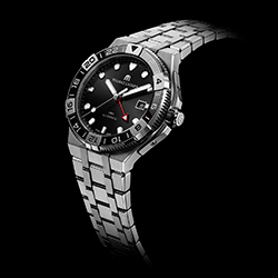 Характерная декоративная особенность коллекции AIKON, шесть выступов на безеле, в линейке AIKON Venturer стали выполнять функциональную роль – они не только защищают, но и позволяют удобно вращать однонаправленный безель из керамики – высокотехнологичного материала, устойчивого к появлению царапин. В версии с GMT безель имеет 24-часовую разметку, по которой скользит стрелка второго часового пояса, делающая полный оборот вокруг циферблата за сутки.