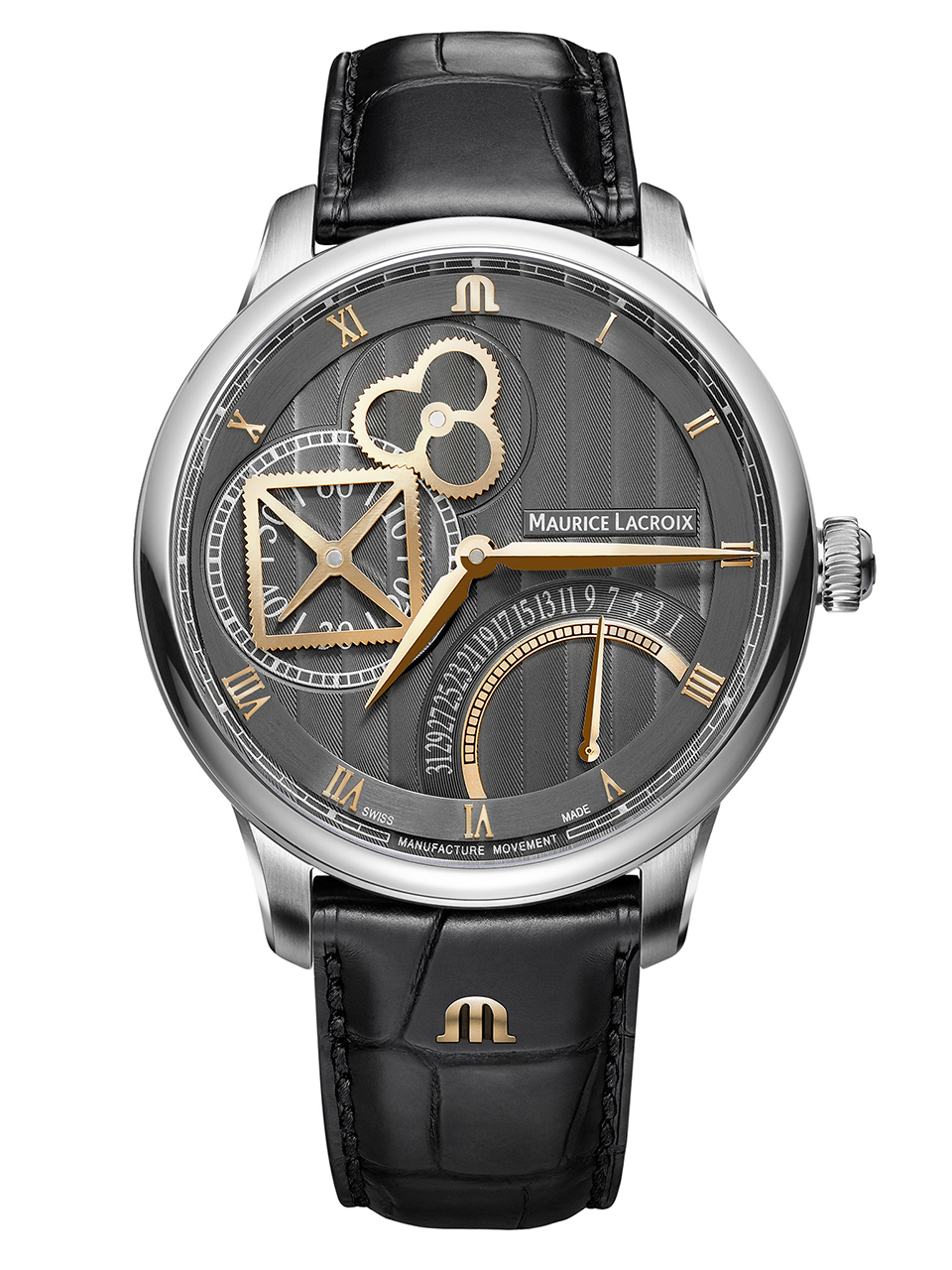 На протяжении всей истории существования Maurice Lacroix ретроградная индикация была одной из фирменных характеристик бренда. Перемещение стрелки вдоль дугообразной траектории представляет собой завораживающее зрелище. Не меньше впечатляют и ее скачкообразное возвращение из крайней точки в исходное положение и моментальное возобновление движения.