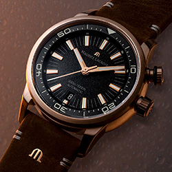 Первая модель выполнена в бронзовом корпусе диаметром 42 мм, который со временем приобретет уникальную патину, что придает часам винтажный вид. Чёрный циферблат украшен стрелками и метками золотистого цвета, покрытыми Super-LumiNova® для яркого свечения в темноте. Часы поставляются с коричневым кожаным ремешком, создавая элегантный образ. Эта модель выпущена ограниченным тиражом — всего 888 экземпляров.