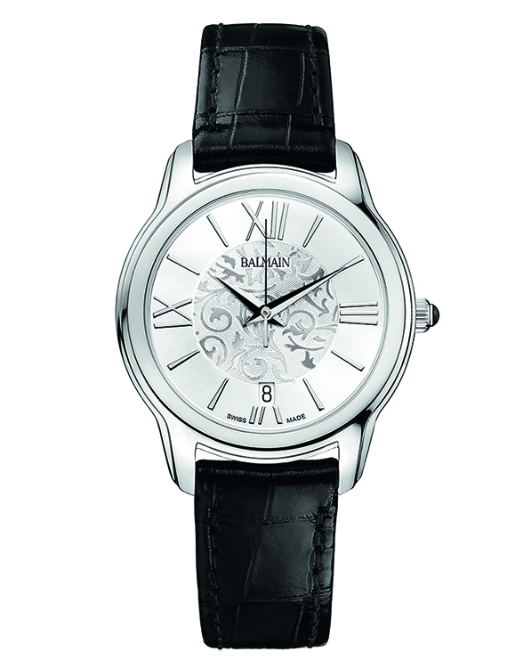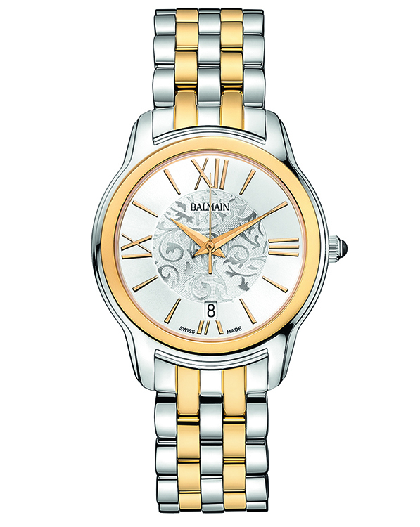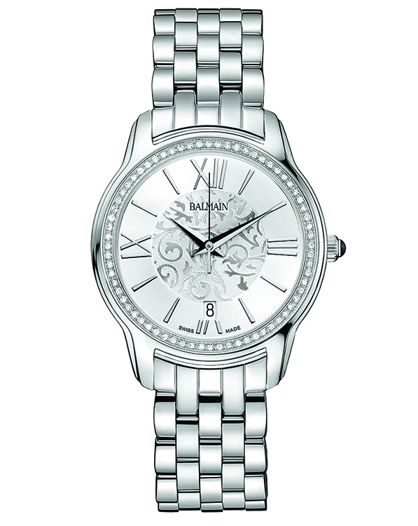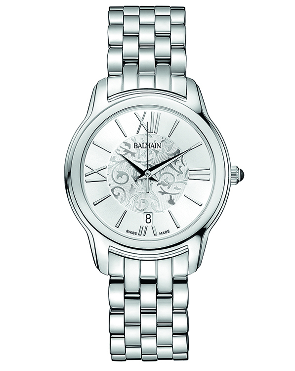 | 1. Модель «Miss Balmain Dream» B1891.33.12 Стальной корпус; серебристый циферблат, украшенный фирменным орнаментом в виде арабесок с белыми римскими цифрами (III, VI, IX, XII) и условными индексами, с гранёными центральными стрелками часов и минут, центральной секундной стрелкой; стальной наборный браслет. |